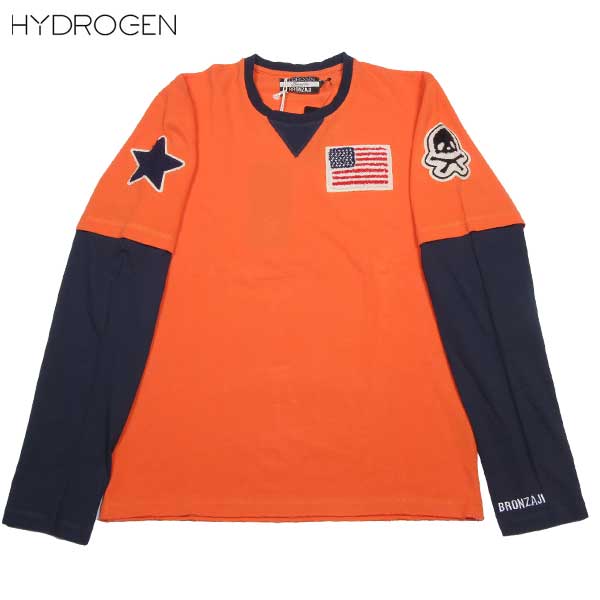ハイドロゲン HYDROGEN メンズ BRONZAJI スカル ロング Tシャツ ロンT 重ね着風デザイン オレンジ色 長袖 148004 010 ARANCIO DB14S