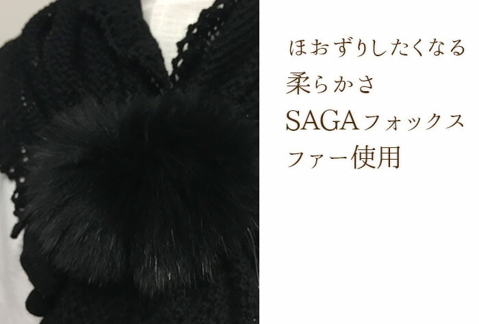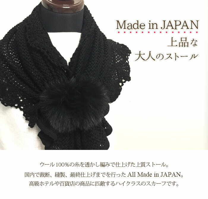 ストール レディース ウール 日本製【透かし編みウールケープ風 ワンタッチファーストール】ファー ワンタッチ フォックスファー SAGAフォックス あたたかい 柔らかい 防寒 パーティー 結婚式 クリスマス お出かけ ストール 秋冬ストール