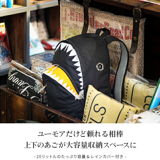 サメの真っ赤なお腹の中には、ファスナー付きの「ポケット」と「ポケット」が装備されています。