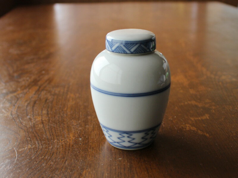 商品情報 【規格】 アウトレット 【サイズ】 直径:約6.5cm 口径:約2.2cm 高さ:約9.5cm 【重量】 約145g 【容量】 約180cc(満水時) 【素材】 日本製磁器、美濃焼 【仕様】 電子レンジOK 食器洗浄機OK オーブンNG 藍染線描シリーズ ・藍染線描 ミニ急須 ・藍染線描 宝瓶急須 ・藍染線描 高台小煎茶 ・藍染線描 切立小湯呑 ・藍染線描 茶こぼし ・藍染線描 三つ足香炉 ・藍染線描 ナプキンリング ・藍染線描 ナプキンリング・小 ・藍染線描 聞香杯 ・藍染線描 ティーポット藍染線描 茶壷 繊細な藍染の幾何学的な手描きの文様が奥深い、手のひらサイズの茶壺(茶葉入れ)です。